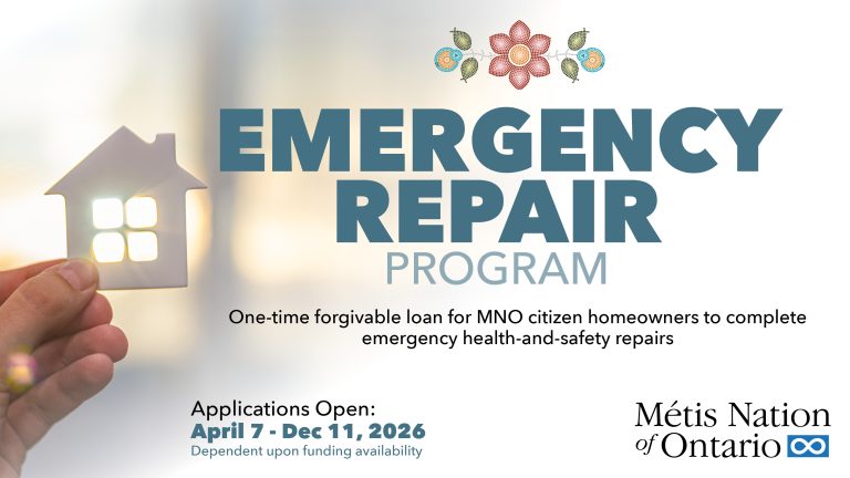 The Emergency Repair Program (ERP) is now open. Eligible Métis citizen homeowners can apply for support with urgent health and safety repairs from April 7, 2026, until December 11, 2026, dependent on funding availability.