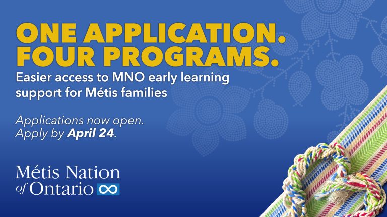 The Métis Nation of Ontario (MNO) Early Learning and Child Care (ELCC) Program is now accepting applications for four key supports through a single application for the 2026–2027 program year.